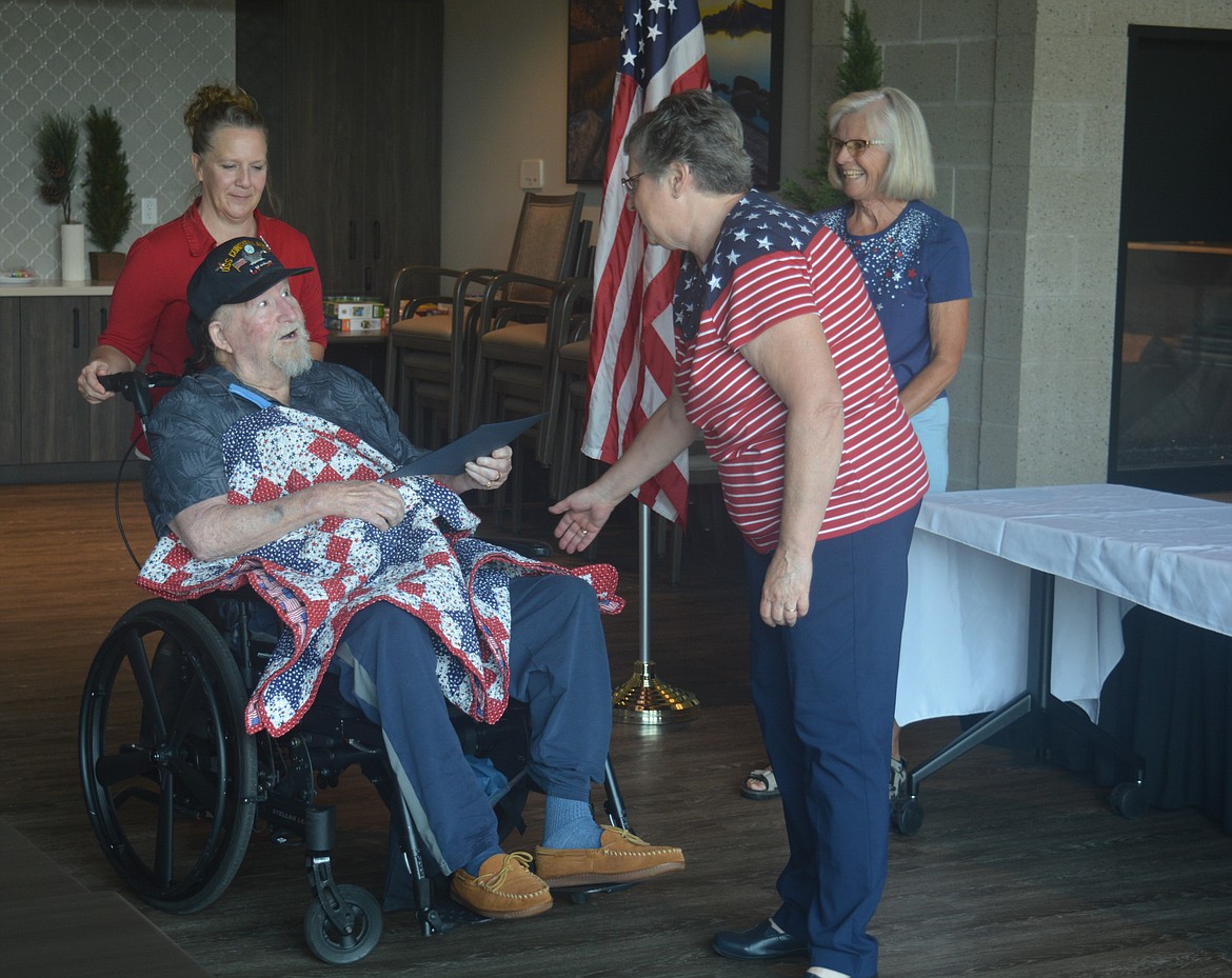 POST FALLS — One by one, nine veterans received honors and a Quilt of Valor on Friday morning at the Idaho State Veterans Home.