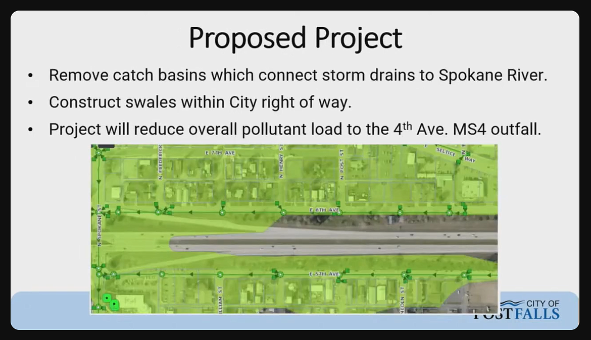 This project is part of the city's effort to comply with MS4 permit requirements, which govern areas where water can transfer to the Spokane River. The city submitted its pollutant reduction plan in October 2022, as required.