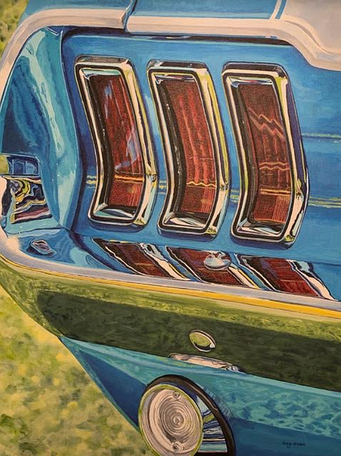 The Art on Wheels paintings feature bold color, interesting perspectives and, of course, lots of chrome! Car enthusiasts will enjoy this exhibit as a supplement to the annual Car d’Lane event. Many might recognize some of Graham's subjects — many of the cars she portrays have been participants in local shows.