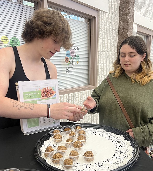 Working with Venture health teacher Tony Hook and Coeur d'Alene School District Nutrition Services kitchen manager Valerie Martin, Johnson taught students how to make healthy and delicious meals using low-cost ingredients. Students showcased those new skills at Exhibit Night as they shared a variety of healthy recipes, such as vegetarian chili, smoothies and energy bites.