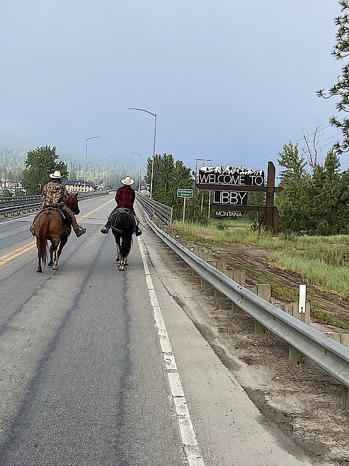 Libby High School seniors Morgan Davis, left, and Gabe Gier rode their horses eight miles to class on the first and last days of school in the 2023-24 year.