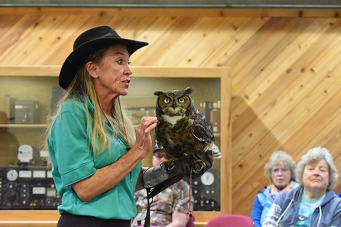 Also part of the presentation was “Tigger,” a great horned owl, “Rusty,” an 8-year-old red-tailed hawk and “Luna,” a 7-year-old peregrine falcon.