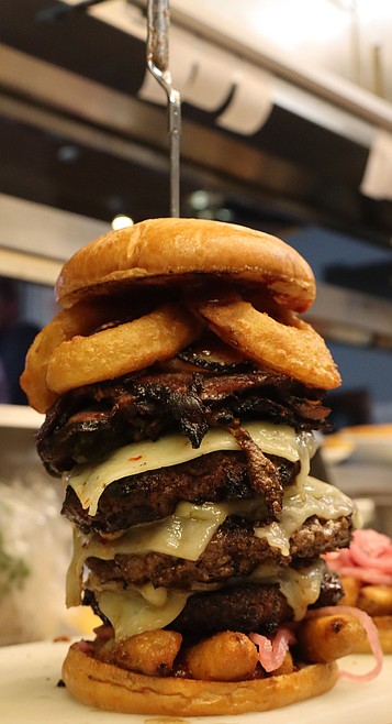 The Flossie Challenge basically quadruples the original burger. Participants pay $45 to compete and have 30 minutes to vanquish the mountainous meal.