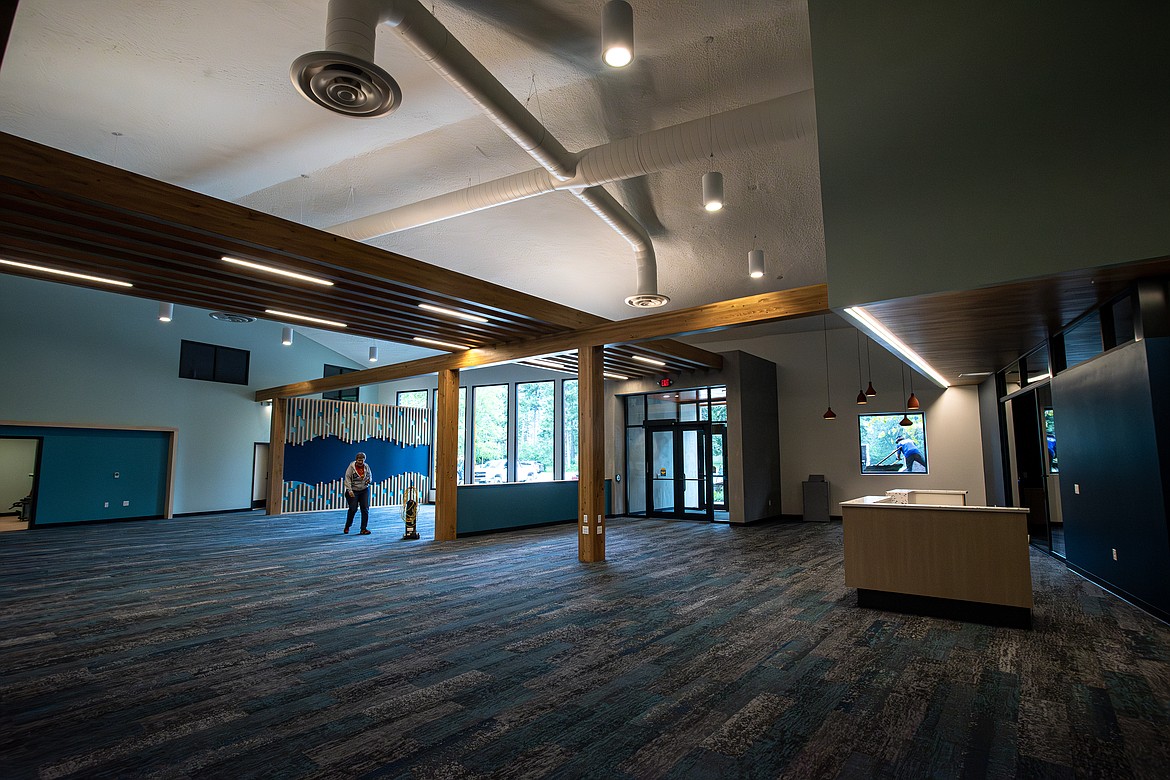 Construction moved right along this winter, with crews able to pour concrete in December owing to mild winter weather. The original roof stayed, which helped with turnaround, but Site Manager Jeremy Peterson said the biggest challenge was keeping the walls intact while crews installed new floor-to-ceiling windows on the front side of the building.