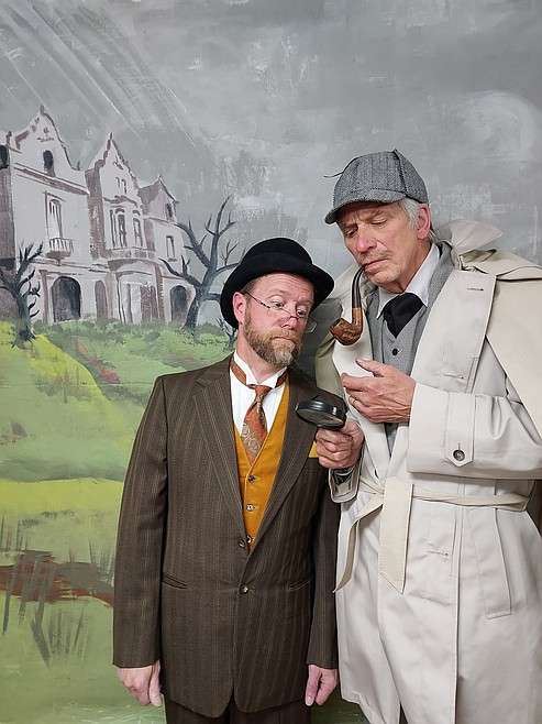 Neal Lewing plays Sherlock Holmes while Jim Siragusa clocks in as Doctor Watson. Anna Loehrke, daughter of Players producers Karen and Neal Lewing, flew back from Cleveland to her old stomping grounds to direct the show and play 14 roles as the only female in the production.