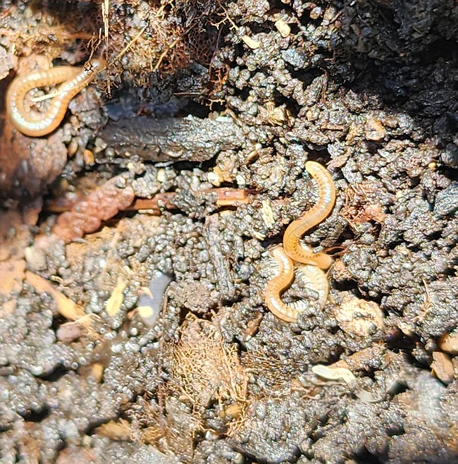 Macro-decomposers like earthworms, pillbugs, and ground beetles slowly consume organic materials returning their nutrient-rich excrement to the soil. Oxygen-loving bacteria and fungi improve soil by producing ammonium as they consume organic material, which provides nitrogen for healthy plant growth.