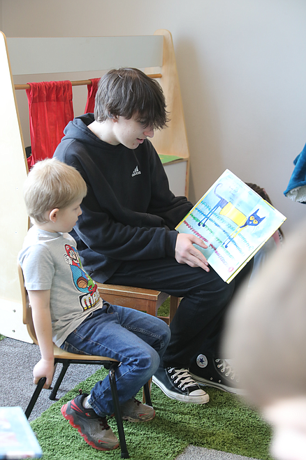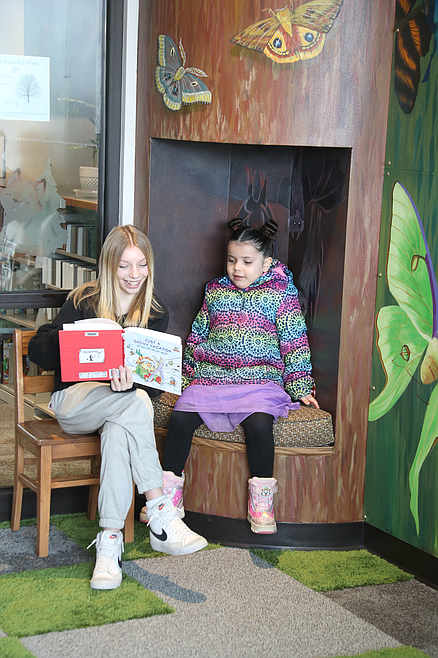 At the Sandpoint Library, kindergarten students were paired with seventh-grade reading buddies who shared a book of the younger student’s choosing with them.