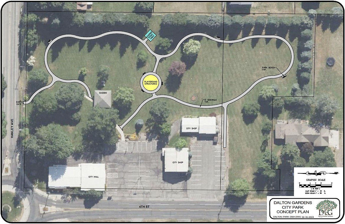 DALTON GARDENS — Councilmember Gary Sonnen brought an early concept design for a city park during Wednesday's Dalton Gardens City Council meeting.