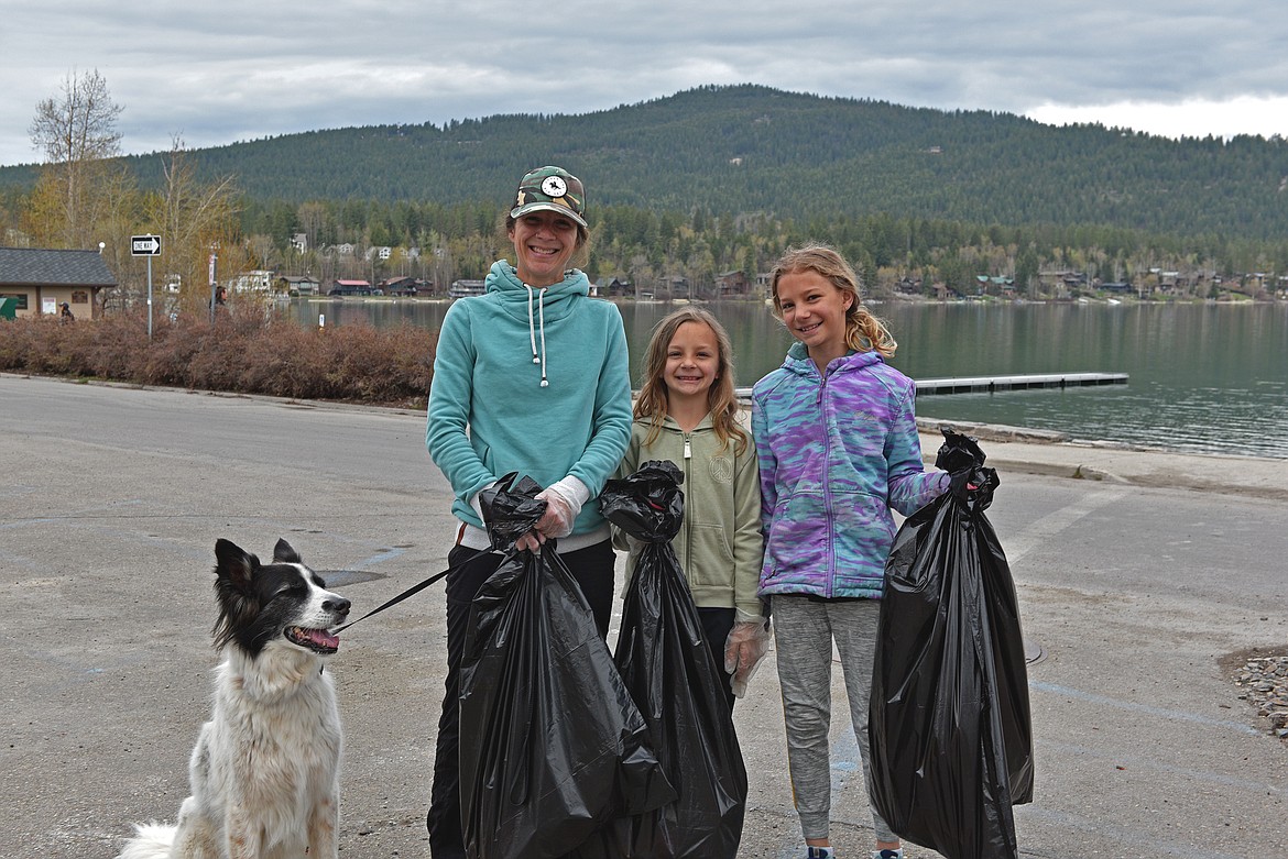 Families and friends took to the streets and riverbanks equipped with trash bags, gloves and safety vests, which were handed out with breakfast at Glacier Bank on Saturday morning.