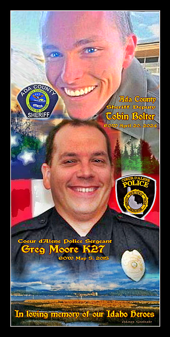 On Wednesday, he used what he calls his “blending” technique to combine images on a poster of Greg Moore and Bolter. Both are smiling and proud. It includes their names, titles and date they were slain, and the words, “In loving memory of our Idaho heroes.”