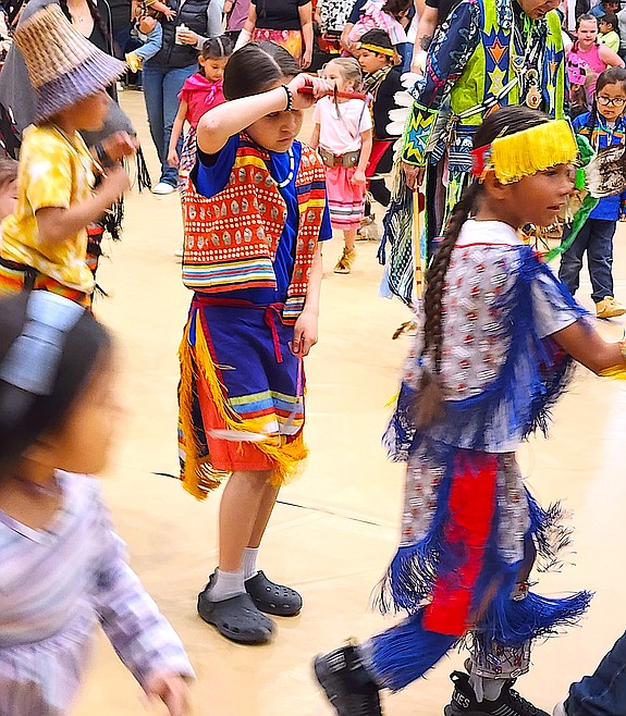 The children, their teachers, parents, grandparents and other family members followed the Mission Valley Honor Guard, tribal elders and Eagle Staff Carrier Allen Pierre and Head Woman Mary Jane Charlo. Chief Cliff drummed everyone into the gym. The annual gathering is a much-anticipated and much-loved event for children and their families.