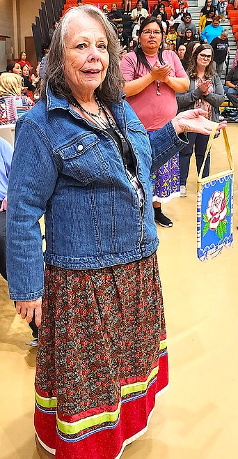 This year the powwow honored a much-loved person, retiring Head Start director Jeanne Christopher. She’s been with Head Start in different positions for 49 years.