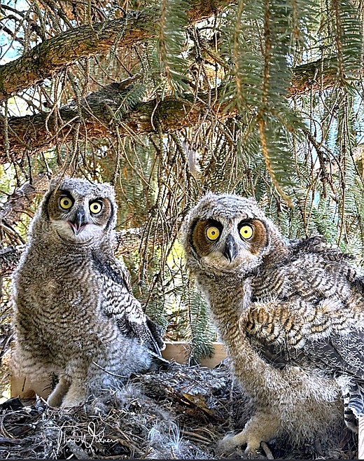COPELAND — Three great horned owls were recovered at Elk Mountain Farms after having trouble staying in a rickety nest.