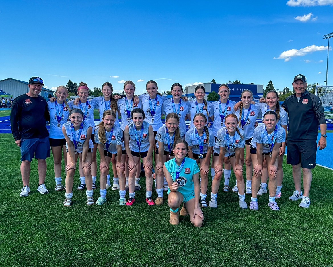 Courtesy photo The FC North Idaho 2015 boys soccer team won the Spokane Lilac Tournament championship. They beat the Spokane Raptors 3-1, the Spokane Fire Dragons 6-1 and the Spokane Rapids 3-2 to take home the gold medal. In the front row from left are Ryker Bailey and Cole Birdsell; second row from left, Liam Rhode, Trevor Comstock, Talmadge Greene, Eli Ramsey, Ethan Braga, Peyton Pecor and Estes Hartley; and rear, coach John O'Neil.
