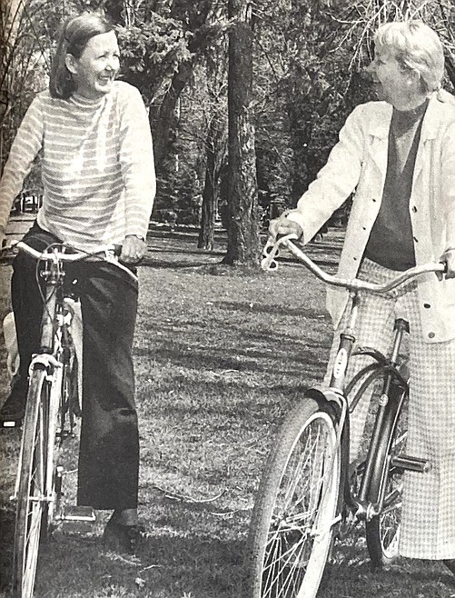 Mary Lou Reed, the Grand Dame of the Kootenai County Democrats, and her Fernan neighbor, Donna Young, were part of the local bicycle craze 50 years ago (May 28, 1974).