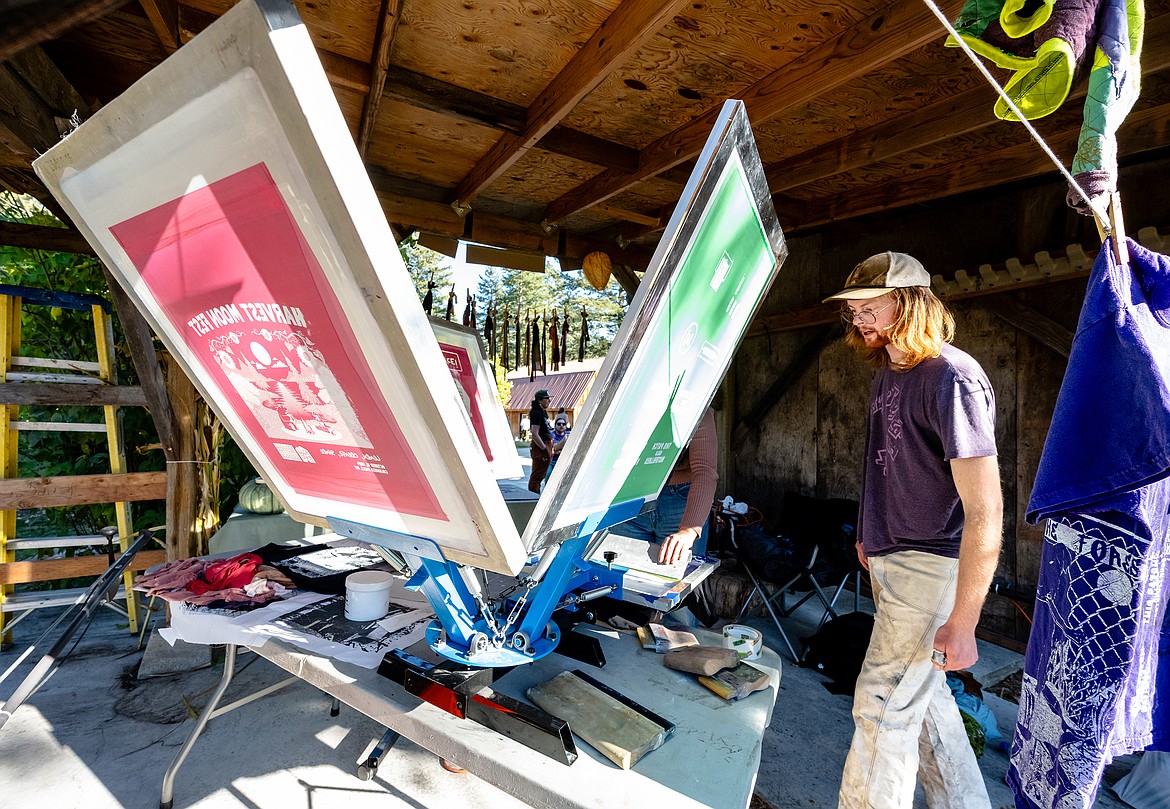 On scene, people were painting, spinning pottery, sand pouring, blacksmithing, printmaking, pressing apples into cider, serving up doughnuts, playing live music, dying bandanas, building communal canvasses, and selling handmade jewelry and clothes, to name just a few. Several artists were giving live demonstrations or co-creating with participants.