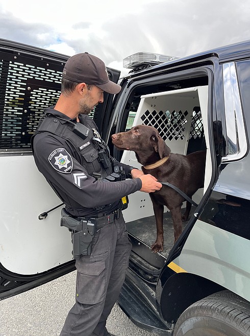 Mika, the new K-9 partner of Cpl. Greg Reynolds, a school resource officer with the Boundary County Sheriff's Office, recently joined the department and is undergoing training. She joins a number of K-9 and courthouse dogs in Bonner and Boundary counties.