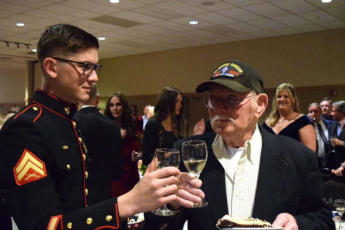 “Tonight, we celebrate all the Marines that didn’t get to come home, and the families that continue to mourn,” Pappy Boyington Detachment No. 966 Commandant Dennis Dodd told The Press. “We also celebrate the future with these young Marines.”