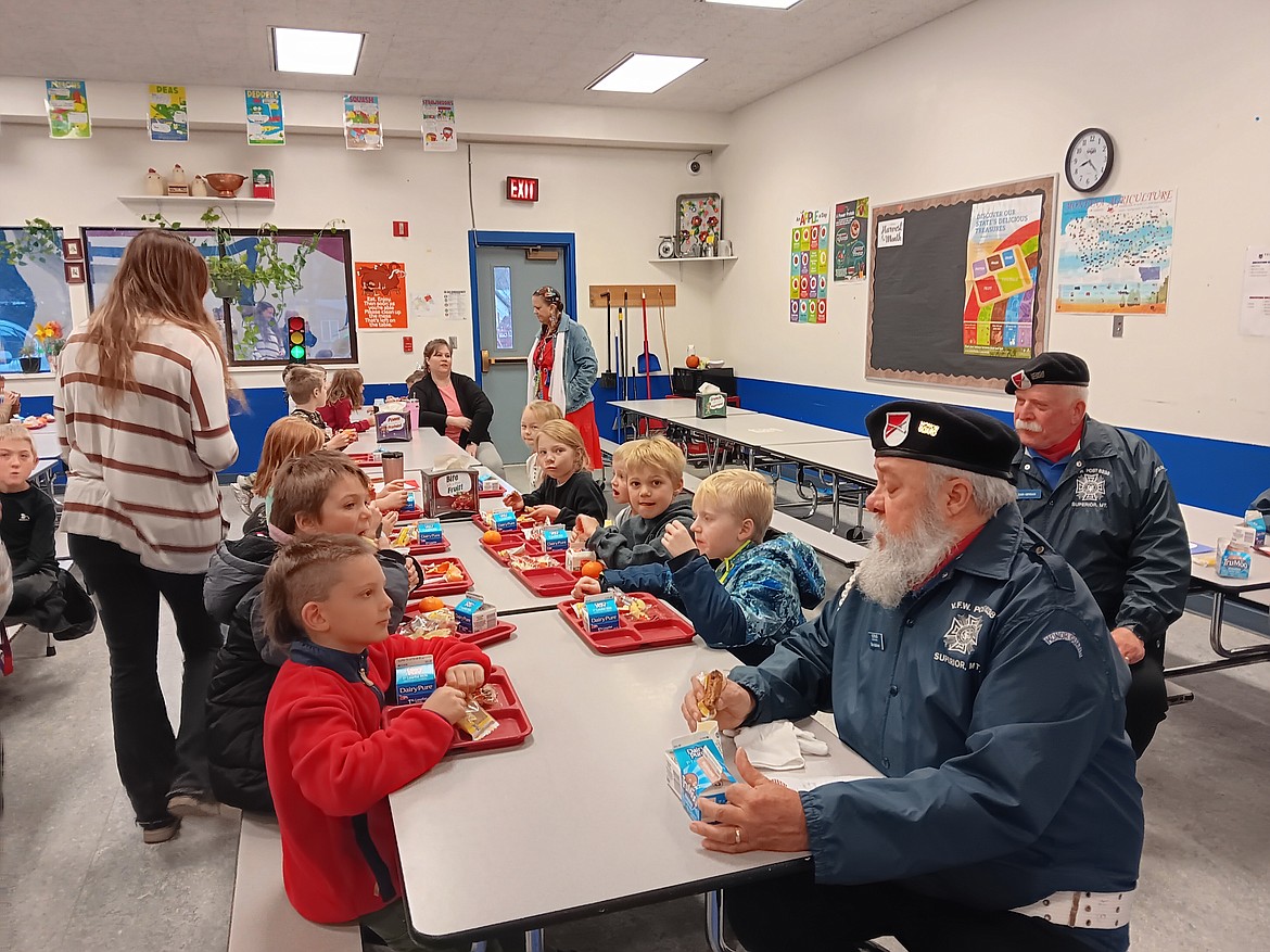 Students had made "Thank you for your service" cards, drew pictures of the American flag and other drawings that they presented to the members of the Honor Guard as everyone entered the building to have breakfast together in the school cafeteria.