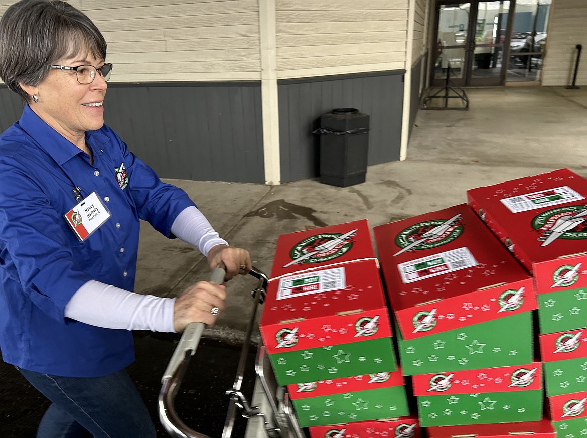 Volunteer Nancy Hartwig said she loves that the program sends gifts and the word of God around the world, and anyone can do it.