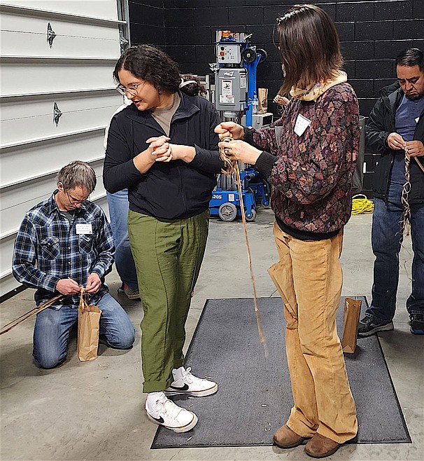 The end result was a piece of strong fiber cord “made the way we used to make it,” Woodcock said. Cordage could be used for tying a parfleche, making a snare, or mending a bridle.