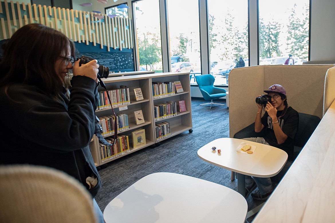 Photographers from the Salish Kootenai College and Two Eagle River School joined library staff and patrons last week to celebrate their work being on display at the new Bigfork branch of Flathead County Library.