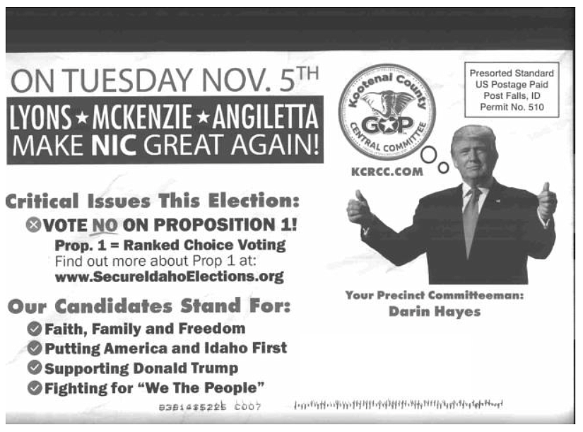 Some precinct committeemen maintain that the mailers are misleading and imply the endorsement of individual members of the Kootenai County GOP.