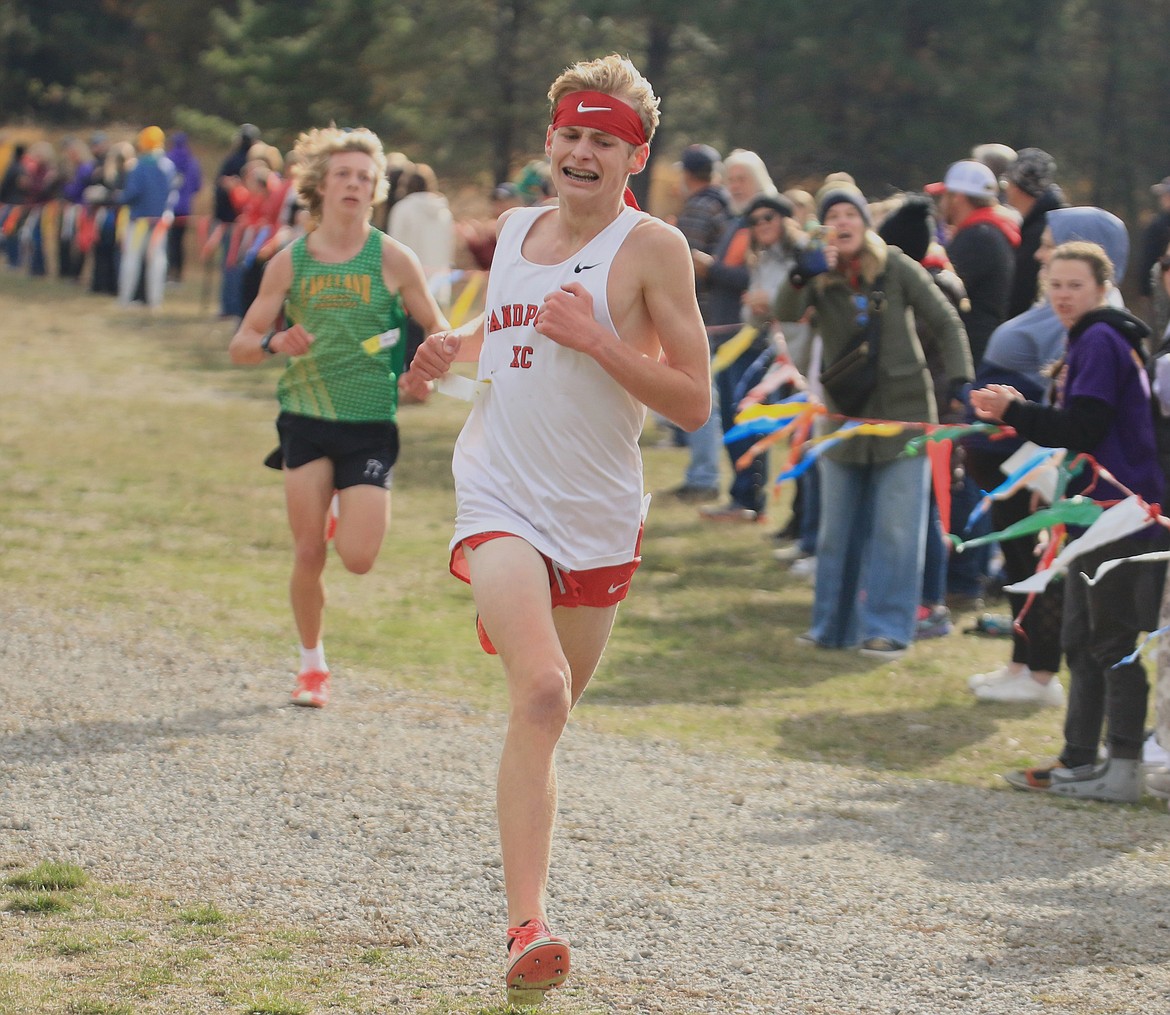 TOP 20 INDIVIDUALS (top 10 to state) — 1, Jack Lovin, Sandpoint, 16:39.63; 2, Frank McCarthy, Lakeland, 16:40.83; 3, Ethan Fenley, Moscow, 16:46.75; 4, Orion McClory, Moscow, 16:48.69; 5, Lucas Clements, Lewiston, 16:57.95; 6, Paul Kent, Sandpoint, 17:04.79; 7, Parker Sterling, Lakeland 17:05.14; 8, Kai Budensiek, Sandpoint, 17:05.58; 9, Wyatt Lemon, Sandpoint, 17:08.26; 10, Charlie Mattila, Lakeland, 17:18.84; 11, Noah Best, Lakeland, 17:36.35; 12, Gabriel Siegenthaler, Moscow, 17:47.40; 13, Trace Evans, Sandpoint, 17:52.59; 14, John Dyer, Moscow,18:01.76; 15, Ian Franklin, Lewiston, 18:03.85; 16, Hobbes Conley, Sandpoint, 18:04.80; 17, Noah Bujnicki, Moscow, 18:20.25; 18, Trenton Stypa, Moscow, 18:20.65; 19, Lee Miller, Lewiston, 18:25.16; 20, Jayden Dan-Johnston, Lakeland, 18:27.56.