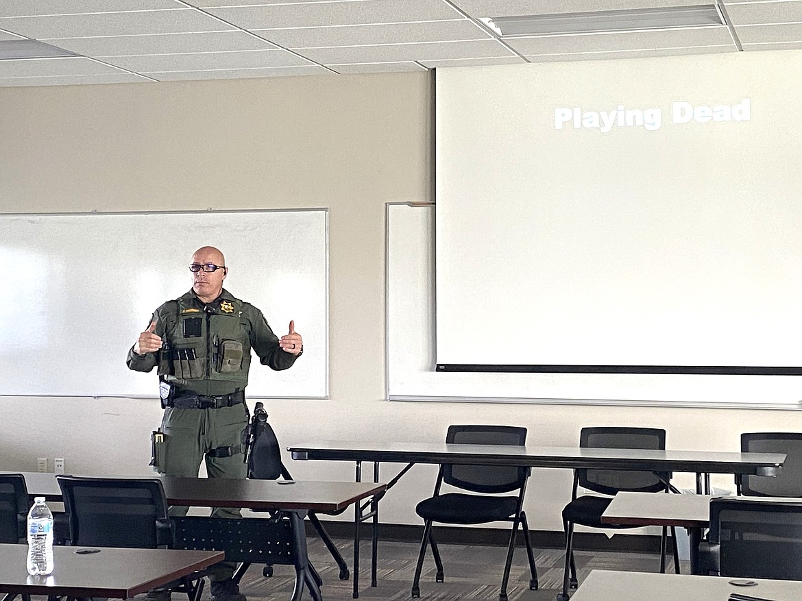 Goodman, along with Deputy Andrew Mohawk, taught several ways people can take decisive action if they find themselves and others in an active shooter situation.