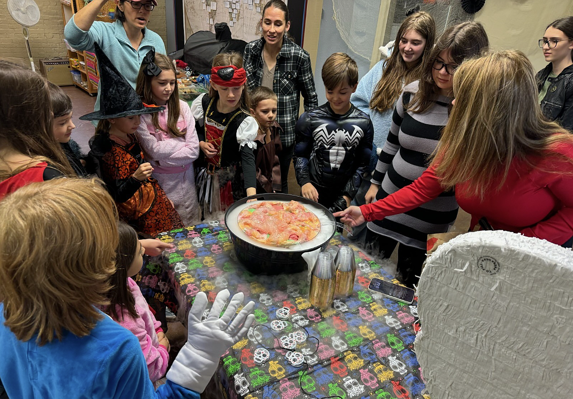 The Spark! students learned about the chemical reaction of dry ice while preparing a bowl of punch. They also explored the history and symbolism of Día de los Muertos and colored masks as part of the festivities.