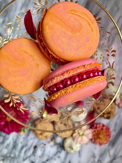 “I do some more savory macarons,” she explained. “The Thanksgiving leftovers is a corn stuffing flavored shell filled with slices of turkey and cranberry. I’ve also done tika masala and mole with cilantro.”