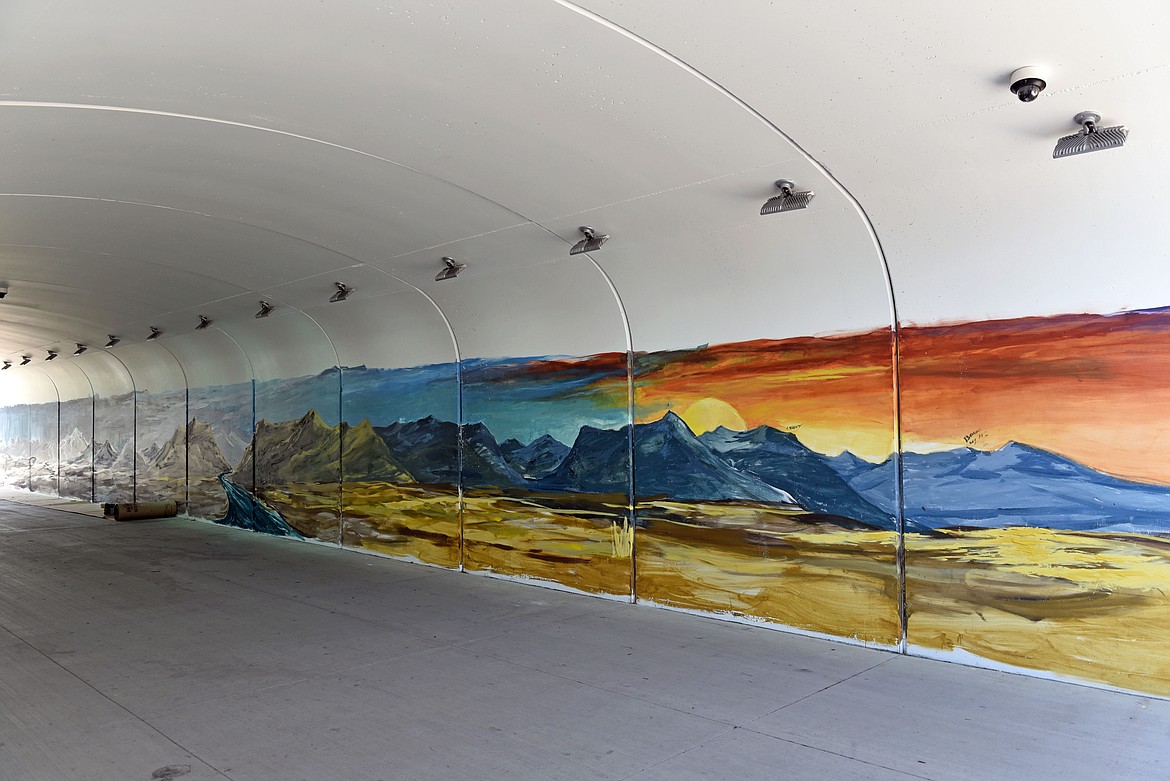 The viaduct tunnel is a little less than four years old but is still evolving. It originally had a public art piece made of steel panels and cast glass on the north side of the tunnel, but it’s since been moved.
