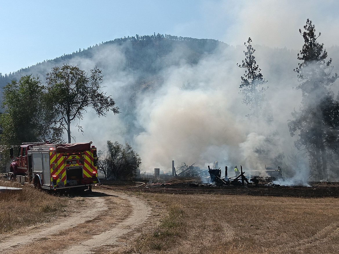 The home of David and Gala Rice on Riverbend Road in Superior was destroyed by fire early Saturday afternoon. The Superior Volunteer Fire Department and Lolo Nation Forest firefighters contained the fire, and no one was injured. (Monte Turner/Mineral Independent)