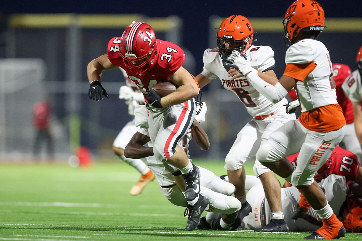 On Davis’ next possession, senior Gage McElroy picked off Pirates quarterback Noah Newkirk and took it back nine yards for a touchdown to give the Bulldogs a healthy 20-0 lead.