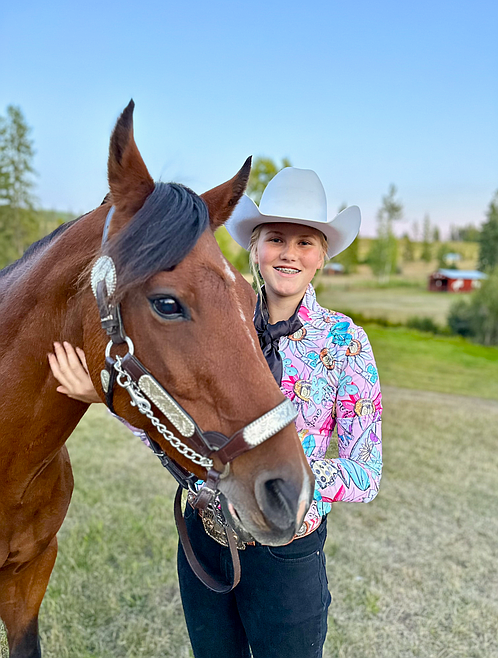 Samantha rode a horse for the first time in 2020, when she and her mom were buying a trailer to transport 4-H animals for the fair. The woman selling the trailer asked if Samantha wanted to try riding, and the rest is history.