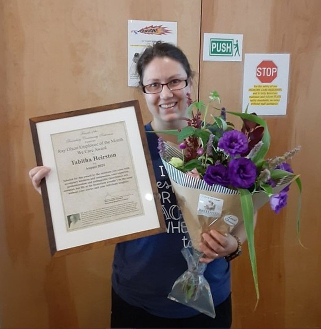 Night supervisor Tabitha Heirston has been named the August 2024 recipient of the Ray Olson Employee of the Month “We Care” Award by the Boundary County Restorium Residents Council.