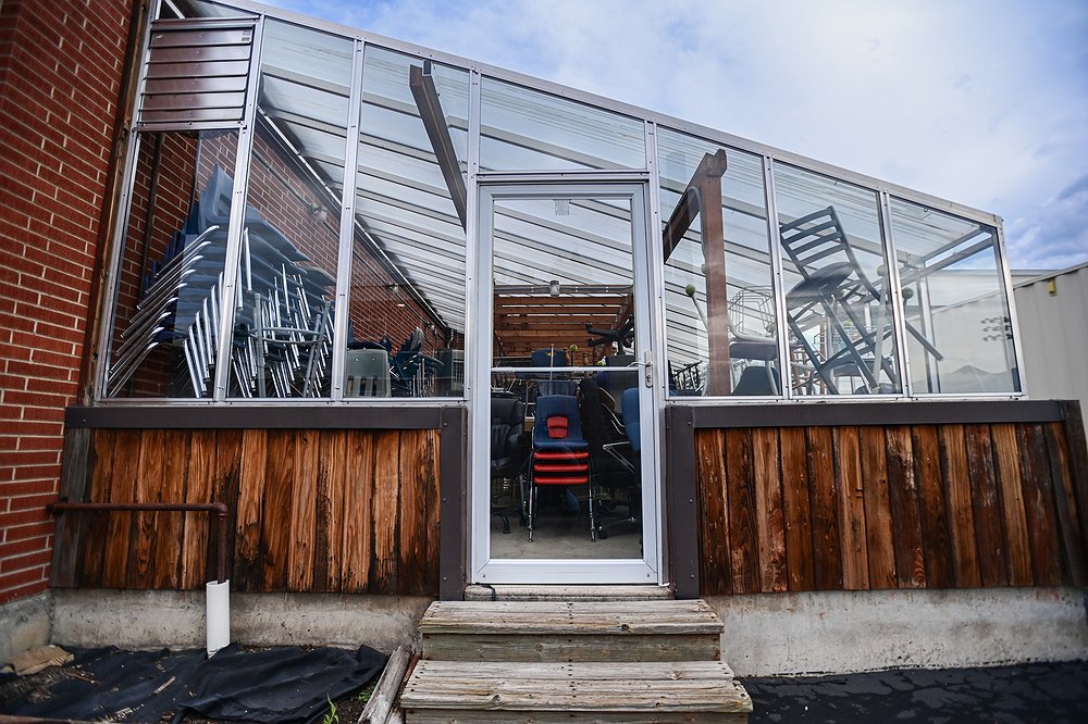 With bathrooms out of commission in the affected wing, students and staff are using a mobile restroom trailer stationed right outside the school. An ADA toilet was also stationed outside the library. Storage containers were also brought on-site and the greenhouse has been used to store chairs.