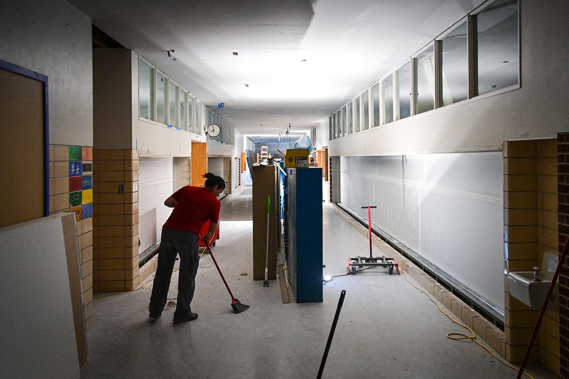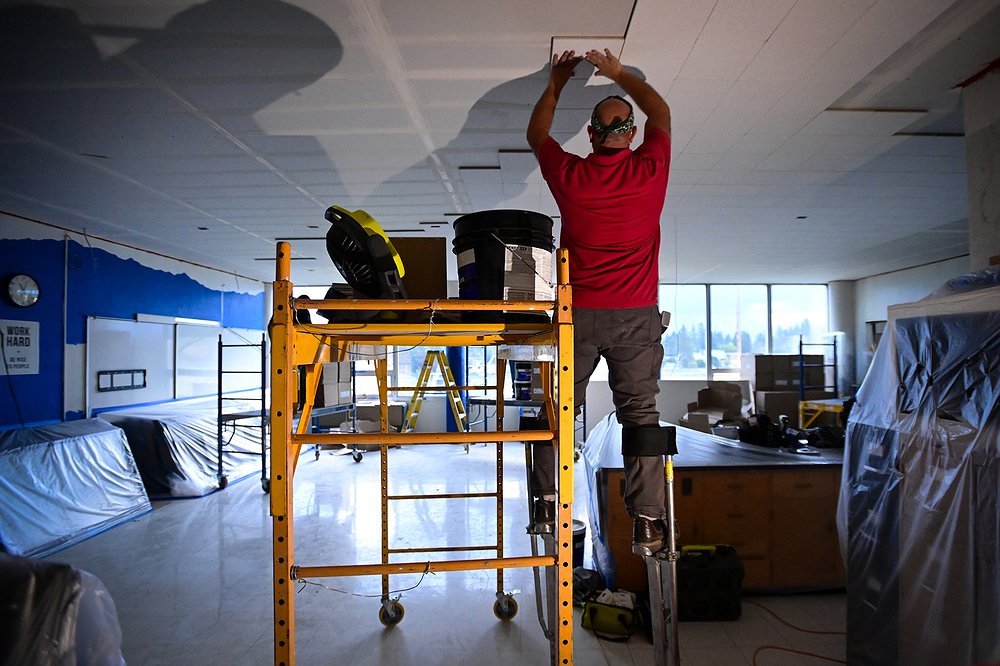 Work continues inside one of the classrooms at Columbia Falls High School on Tuesday, Sept. 17. (Casey Kreider/Daily Inter Lake)
