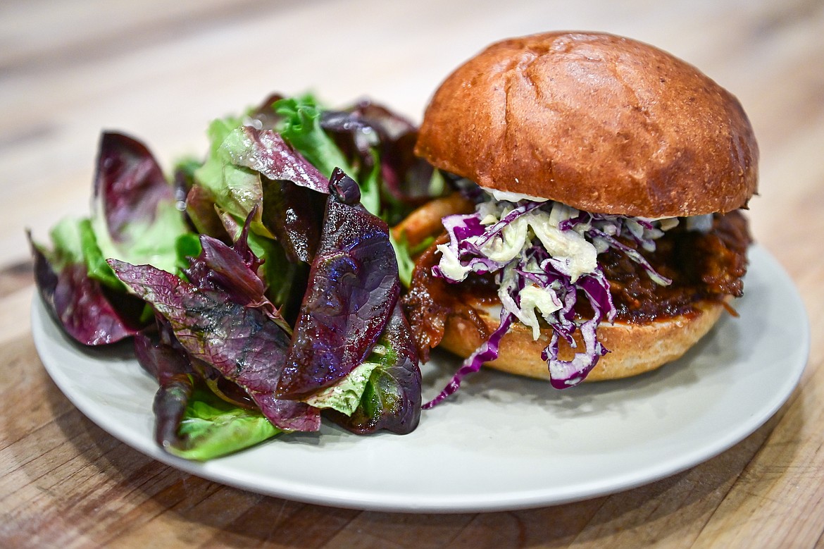 Take the barbeque pork sandwich, served on a house-made bun with a soft interior and a slightly firm exterior. Topped with house-made tangy barbeque sauce, the sandwich itself is loaded with slow-roasted pulled pork and house-made coleslaw. It is a bit messy, but worth the fork-assisted cleanup.