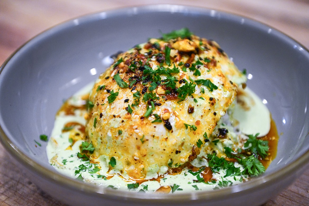 The cafe also features off menu items regularly and switches some options seasonally. The Shifty features two fried eggs served over rice with chili crunch and house green mayo, each bite packing an array of textures and flavors. The green mayo is made fresh with poblano peppers, onions, miso and herbs.