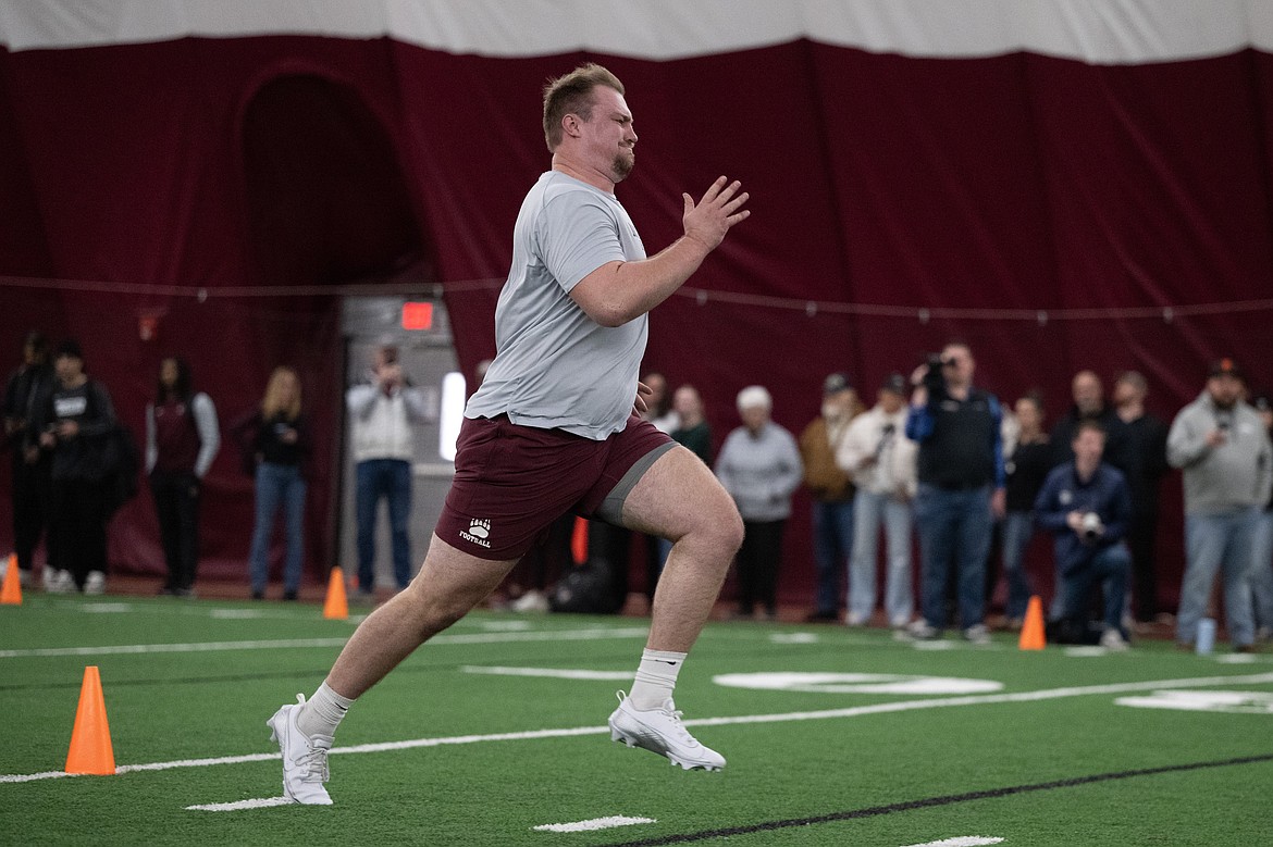 Early Thursday morning at the Washington-Grizzly Champions Center, Casey checked in at 6 feet 5.5 inches tall and 309 pounds to go along with a hand measurement of 9 3/8 inches and a 78 1/8-inch wingspan. During the testing span of the day, Casey pumped out an impressive 27 reps on the 225-pound bench press, clocked a 30.5-inch vertical and sprung to a mark of 9 feet even in the broad jump. In the sprints, the two-time All-Big Sky First Team selection put up times of 5.50 seconds in the 40-yard dash, 4.65 seconds in the pro shuttle drill and 8.03 seconds in the 3-cone L drill.