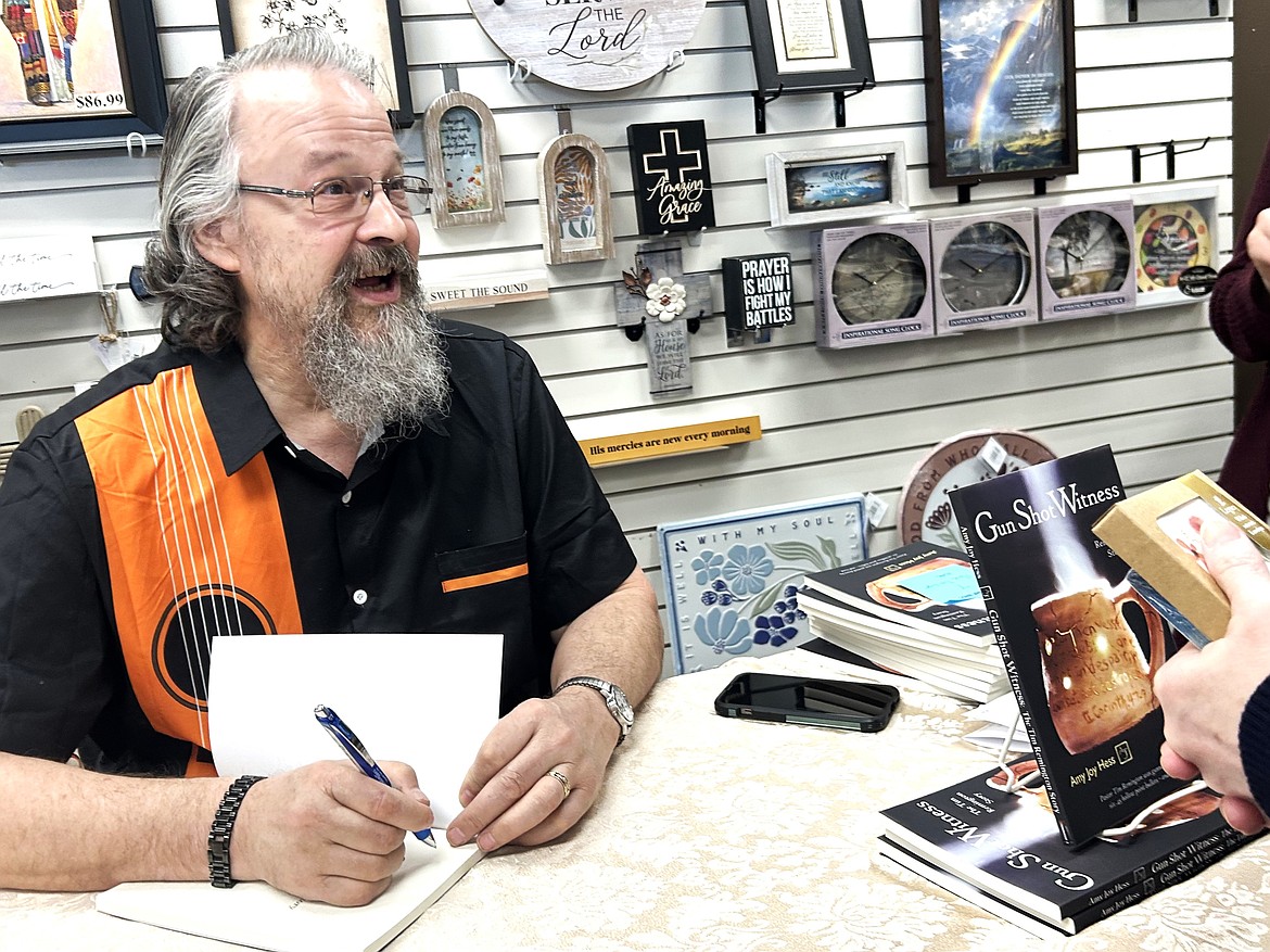 On Saturday, Currie met Remington for the first time as he signed copies of “Gun Shot Witness: The Tim Remington Story,” by Amy Joy Hess at the Sower Bible Bookstore.