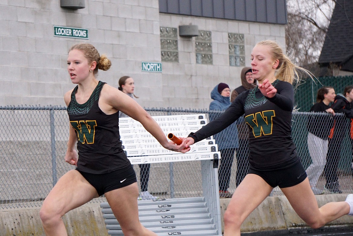 On the girls’ side, senior Rachael Wilmot led the way with commanding wins in both the 100 meters (12.73) and 200 meters (26.08), each a season-best time. She also anchored the first-place 4x400 relay squad, which clocked in at 4:17.53 — a season best. Joining Wilmot on the victorious relay were Ginger Bergland, Stella Frisbee, and Anna Boysen.