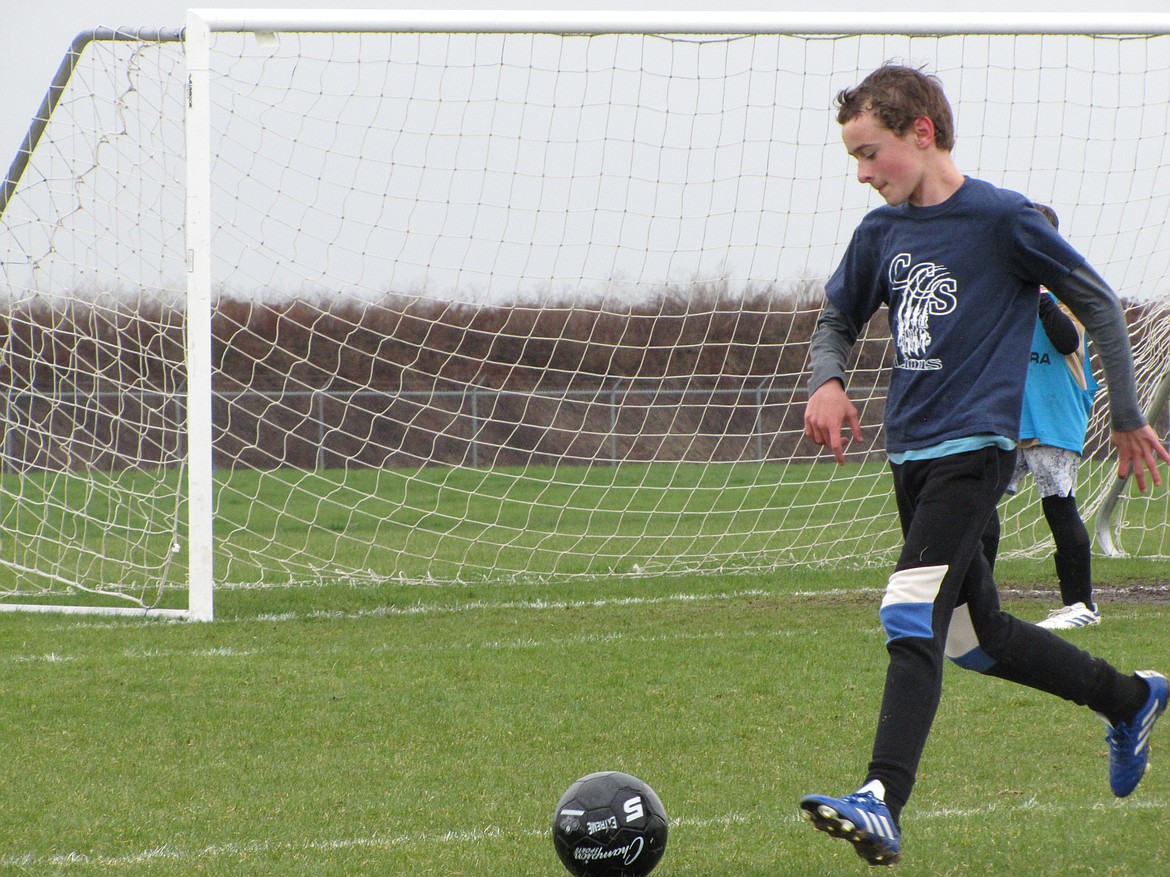 Photo by LUCIA BARTON Isaiah McCrea dribbles the ball for the CCS Lions in a 5-2 victory on Saturday during a Hayden Parks and Rec soccer game at Croffoot Park in Hayden. Emery McKee scored three goals, Tommy Cooper scored a goal and had 2 assists, and Austin Cooper scored a goal.