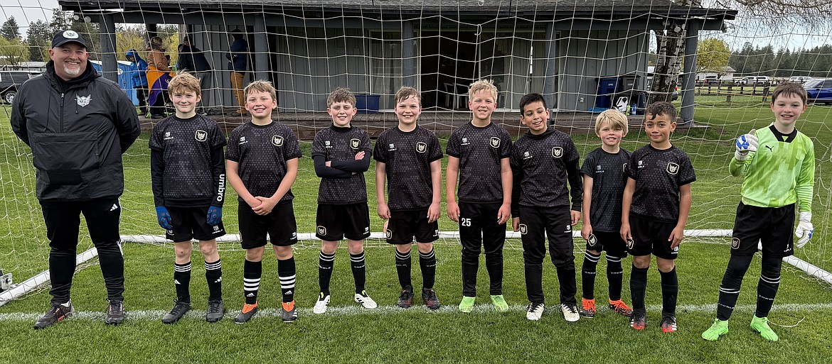 Courtesy photo The Sting Soccer Club 15 boys Black team defeated the Shadow Juniors Van Der Lawson Valley 7-1 last weekend at the Spokane Shadow Soccer Complex. From left are coach Ian McKenna, Harrison Poole, Matthew Clair, Reid Funkhouser, Jake Mitchell, Ryker Weeks, Jacob Barragan, Maverick Woodcock, Joseph Means and Levi Sandoval.