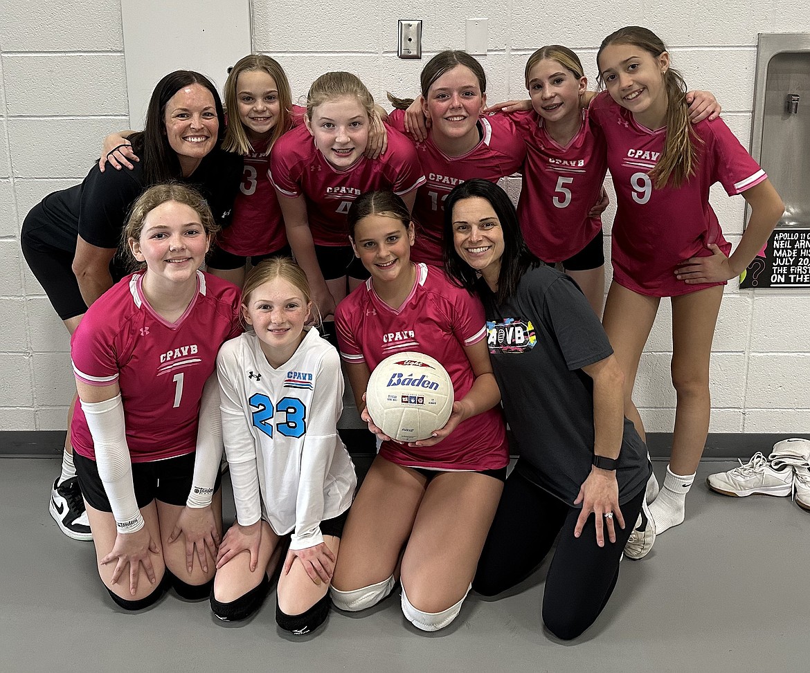 Courtesy photo The CPA 12 CDA volleyball team played in the Inland Northwest Classic last weekend and won all three games in pool play. In the front row from left are Charlotte Johnson, Tya Gelbakhiani, Phoebe Leggat and coach Kelsey Stanley; and back row from left, coach Jenna Leggat, Aida Stanley, Scarlett Clemens, Ella Smith, Eva O’Rand and Chloe Quinn. Not pictured are Abby Grady and Paisley Roberts.