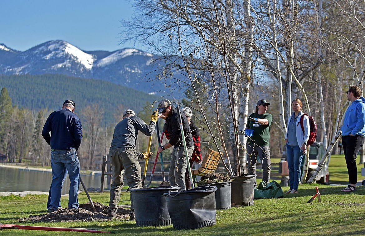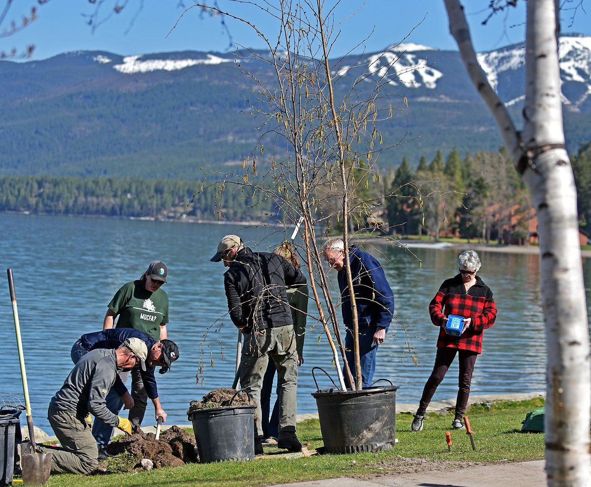 Whitefish city staff and members of the Tree Advisory Committee planted three trees, two paper birch and one Norway maple at Whitefish City Beach in recognition of Arbor Day, on Friday, April 25.