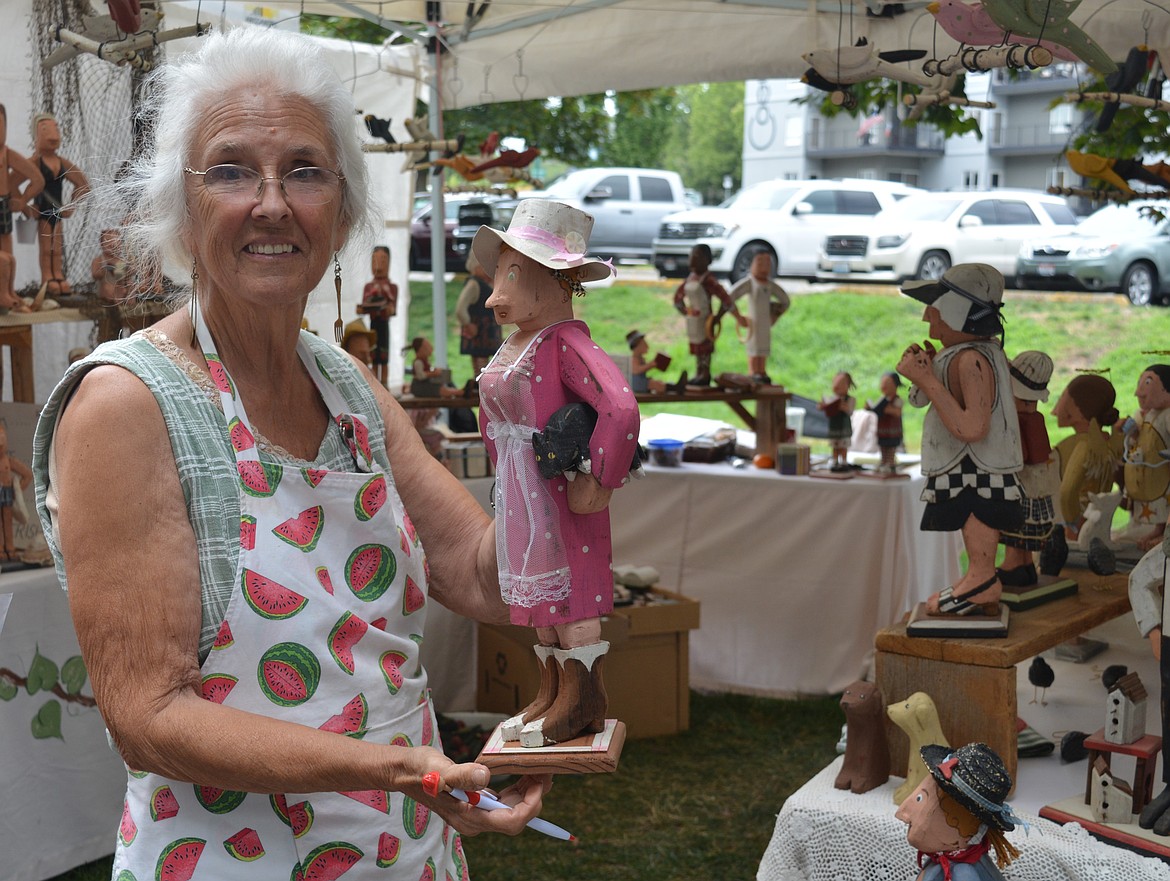 The distinct primitive folk art style she’s developed over the years as part of her business, Crow Feat, results in figurines like Kitty Cowgirl, which drew in passersby to take pictures at her stand at Taste of Coeur d'Alene on Friday at Coeur d'Alene City Park.