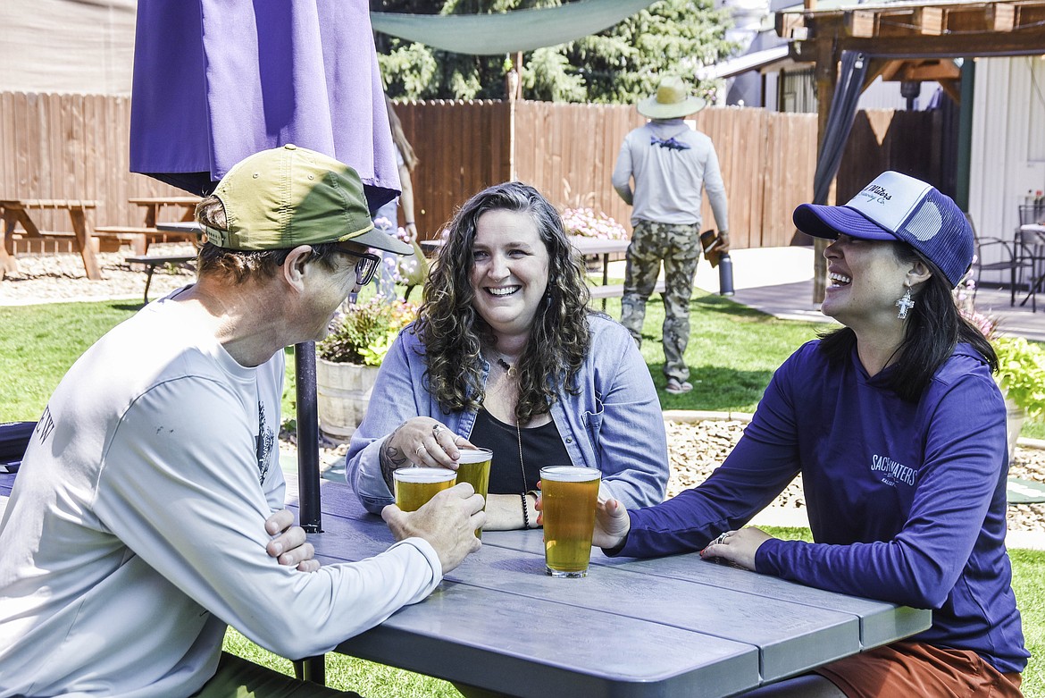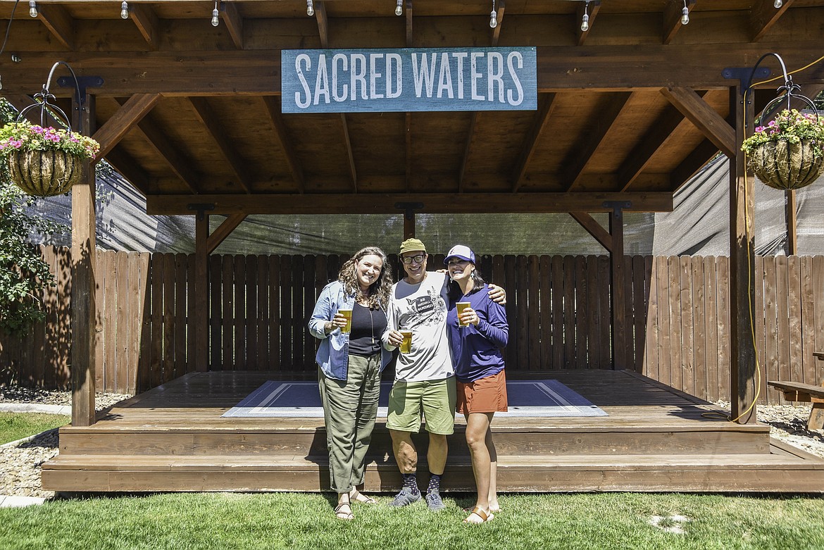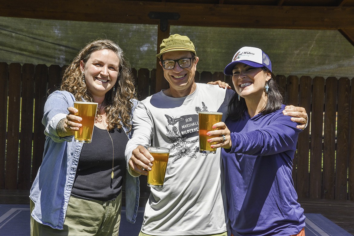 Sitting at a table at Sacred Waters Brewing Company in Kalispell, owner Jordan Gentry, general manager Jackie Evans and Bob Marshall Wilderness Foundation executive director Clifford Kipp share an award-winning IPA together.