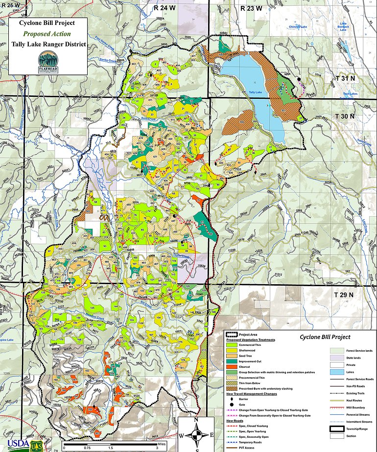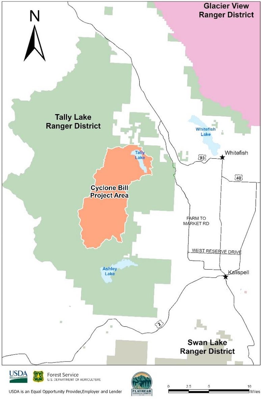 The Cyclone Bill Project, with 56% of its area in the Wildland-Urban Interface, plans for approximately 9,192 acres of commercial timber harvest, as well as 3,139 acres of noncommercial treatments to mitigate wildfire risk by reducing tree densities and fuel loadings.